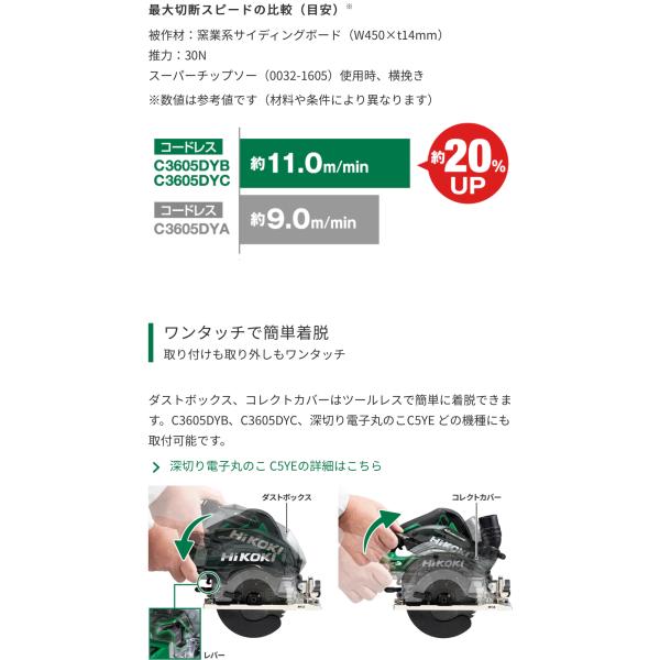 ・HiKOKI 125mm ハイコーキマルチボルト36V コードレス集じん丸のこ C3605DYC(NN) 本体のみ(バッテリー、充電器、ケース、ノコ刃別売)