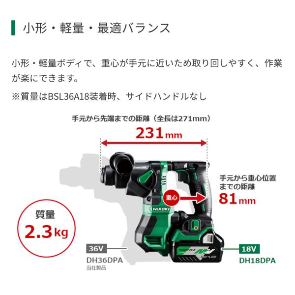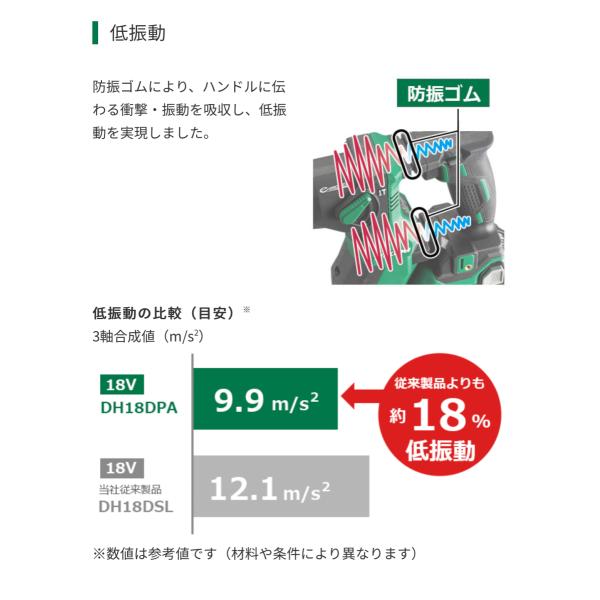 ・HiKOKI 18V コードレスロータリハンマドリル DH18DPA(NNK) 本体のみ(バッテリー、充電器別売) 専用ケース付