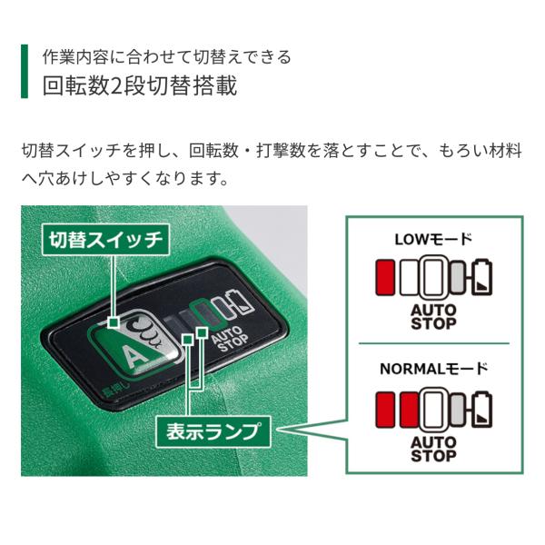 (気温20℃満充電時) NORMALモード 0〜5,500min-1(打撃/分)