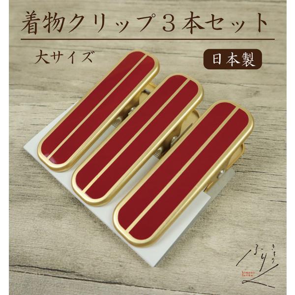 着物用クリップ (3本セット) 大サイズ 着付け 和装小物 日本製 仮止め 裾押さえ 和服 着付教室 ハンディクリップ 着物 衿止め 帯止め