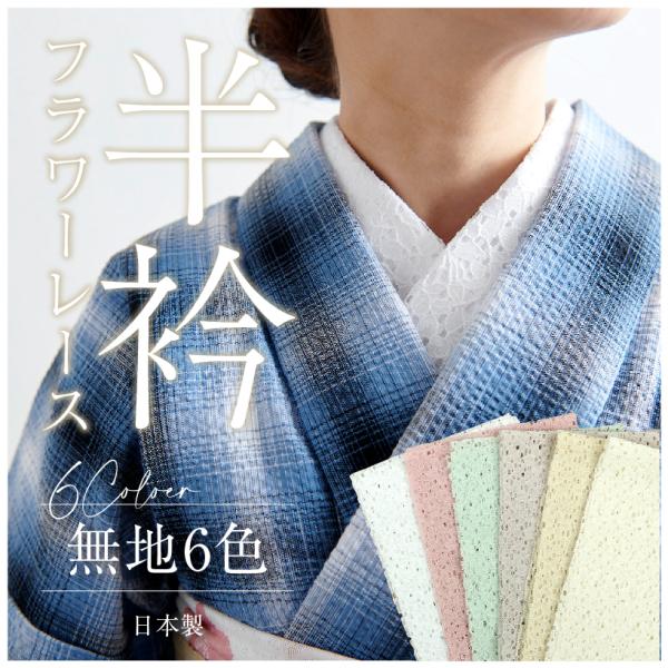七宝レース半衿 カラー無地 全6色 和柄 日本製 大人 かわいい おしゃれ 小紋 春夏秋冬 着付け レース 半襟 和装小物◆