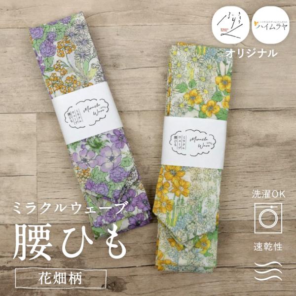 ミラクルウェーブ腰ひも 花畑柄 全2色 オリジナル商品 コットン 日本製 綿腰紐 柄付き腰紐 広幅 腰ひも チェック柄 こしひも 着物 浴衣 着付小物 和装小物