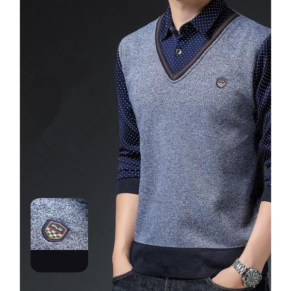 ワイシャツ シャツ 裏起毛 メンズ 重ね着風 トップス