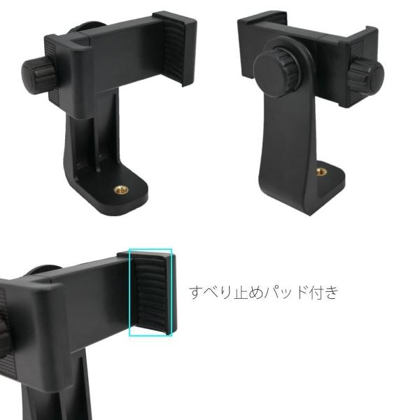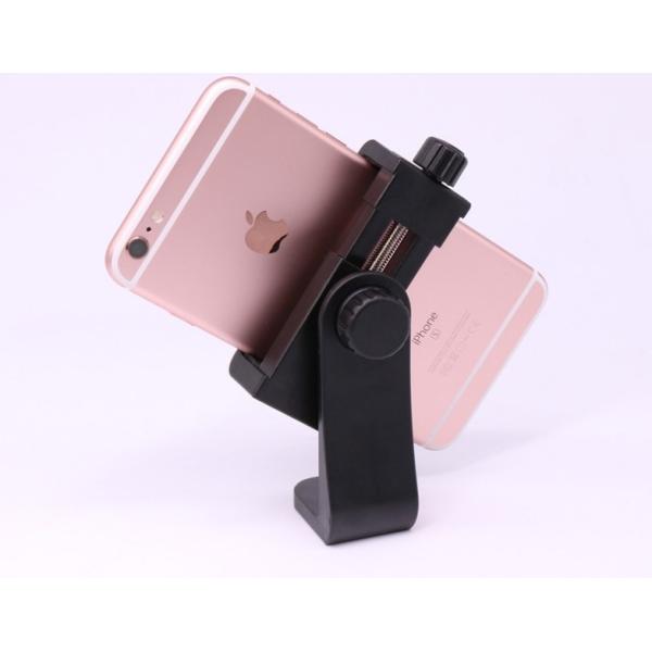 1/4カメラネジ搭載の一脚/三脚/自撮り/延長ポール棒等に取付けられる汎用式のスマホスタンドです。簡単に取り付けられ、スマホを上下から挟み込むだけでスタントに変身。三脚と組み合わせてお使いいただけます。