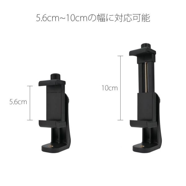 スマホクリップ対応幅:5.6〜10cm。Nexus5/6/7/iPhone5/5C/5S/iPhone6/iPhone6plus/iPhone7/iPhone7plus/Sony XperiaZ2/Z3/Z4/Z5/Samsung/Lenovo/Motorola/ASUS/LG/KYOCERA/任天堂switch(ギリギリ)等の機種を対応できます。