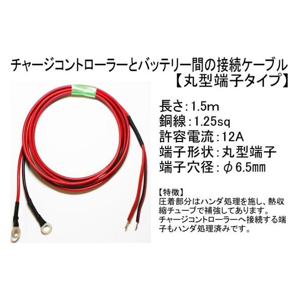 チャージコントローラーと丸型端子タイプのバッテリーを簡単に接続できるケーブルです。