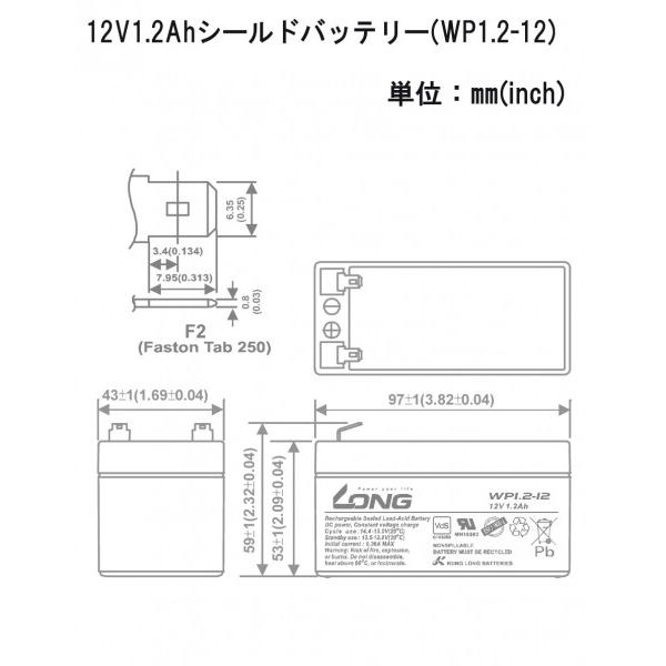 12V 1.2Ah シールドバッテリー WP1.2-12(F2端子) 完全密封型鉛蓄電池 12V 小型 小型12V機器 バッテリー交換 バッテリーバックアップ メス端子付