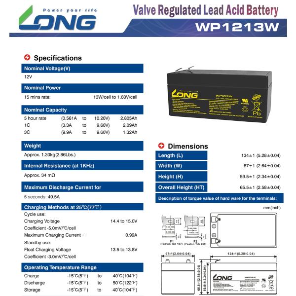 LONG 【高効率放電タイプ 期待寿命3〜5年】12V3.3Ah 高性能シールドバッテリー(完全密閉型鉛蓄電池) WP1213W (F1端子) UPSにも!NPH3.2-12 に互換