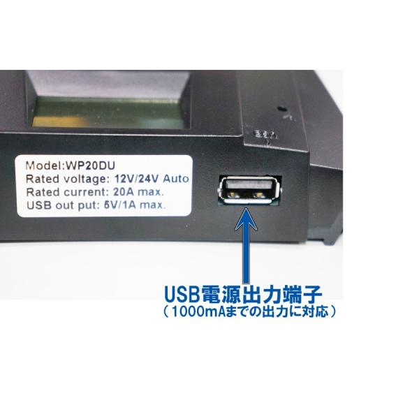 USB電源付 12V-240W 24V-480W システム両用 20A ソーラーチャージコントローラー LCDディスプレイ WP20DU 充電管理 充電制御 外灯電源