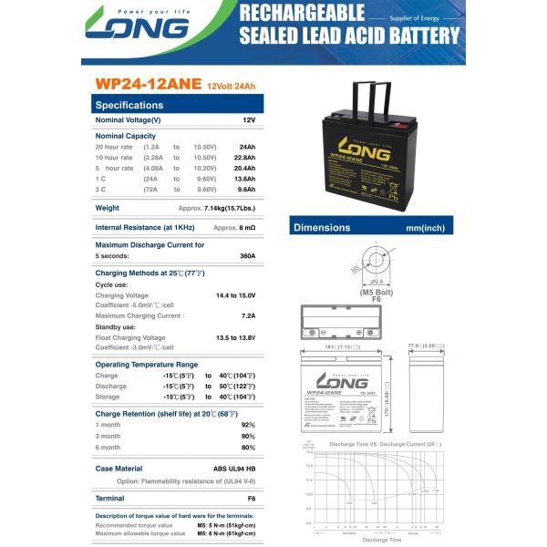 ■LONG 12V24Ah シールドバッテリーの主な性能■
