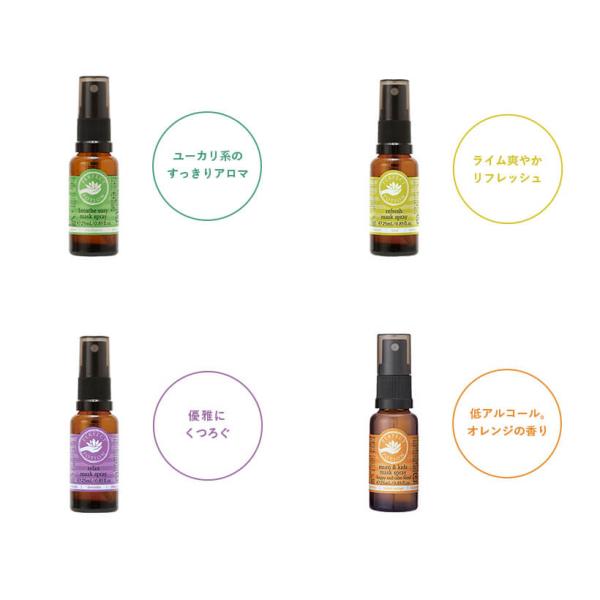 マスクを除菌しながら、天然アロマが香る。4種の香りのマスクスプレー