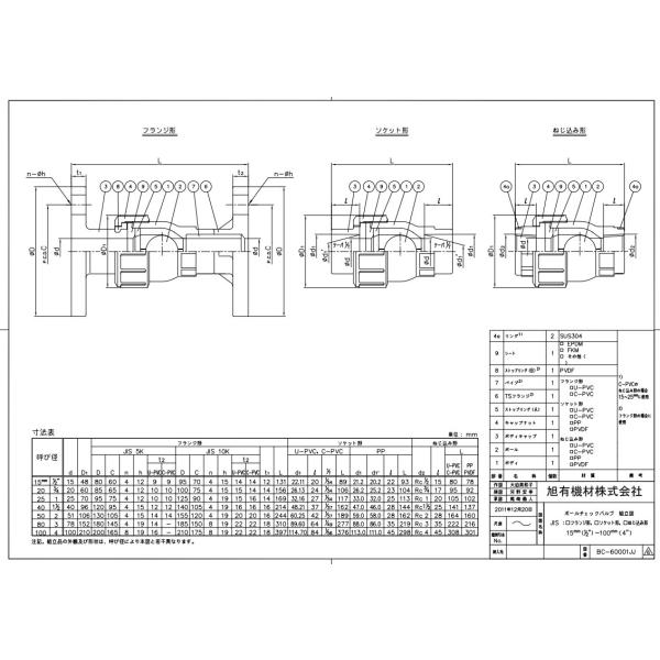 VBCZZUE050 ボールチェックバルブ ソケット U-PVC EPDM 50 旭有機材