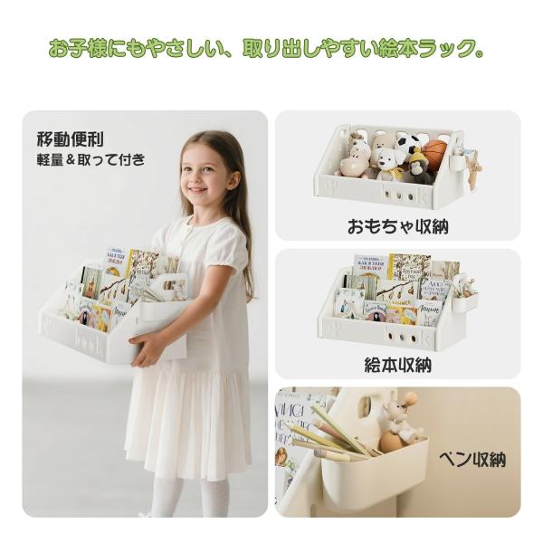 絵本ラック 絵本棚 2段 3段 本棚 ブックラック ブックシェルフ キッズラック 表紙が見える おもちゃ箱 おもちゃ収納 仕切り取り外し可能 片付け 整理整頓