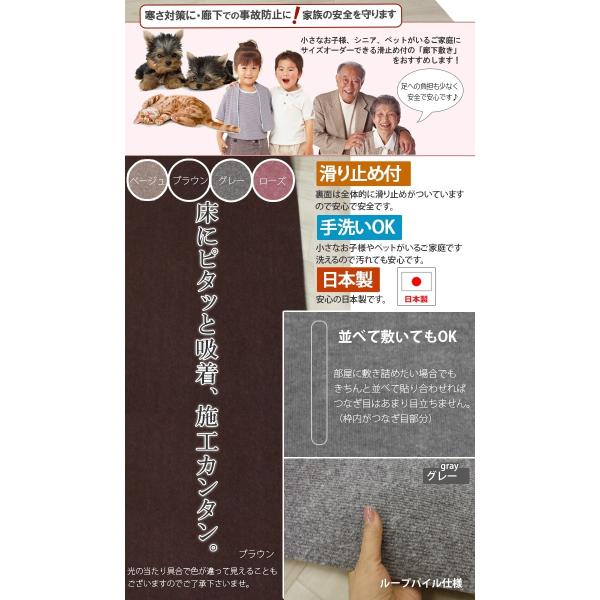 廊下 カーペット ロングカーペット L吸着ロール 滑り止め 廊下敷き 洗える パンチカーペット 1m単位で切り売り (1mあたり) (Y) 幅約91cm 日本製 新生活 爆買