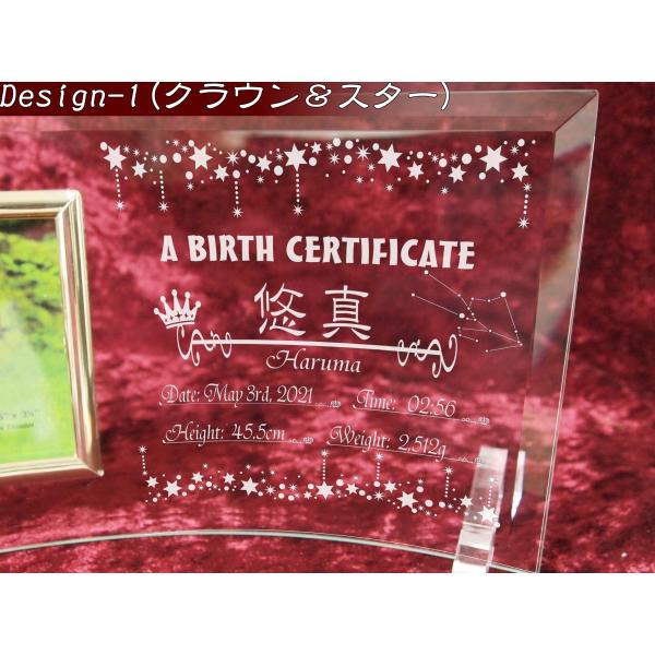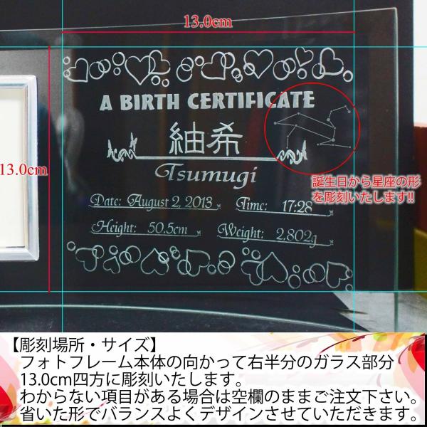出産 名入れ フォトフレーム 出生証明のデザイン彫刻 横型 出産祝い ギフト 贈り物 ガラス 記念 赤ちゃん 内祝