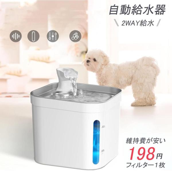 ペット用自動給水器 猫 小型犬 給水器 ステンレス 水飲み器 ペット給水器 猫自動給水器 犬自動給水器 静音 軽量 濾過 大容量 2.2L 送料無料