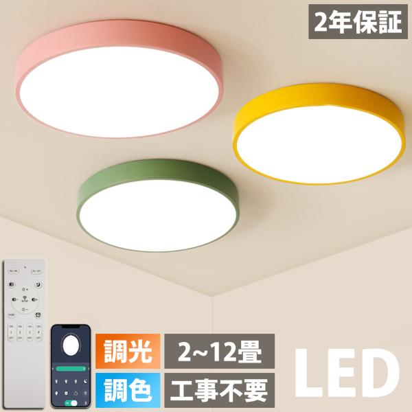 【2年保証】 シーリングライト LED 調光調色 リモコン付き カラフル シンプル 照明器具 天井照明 12畳 6畳 8畳 10畳 子供部屋 リビング照明 おしゃれ カラフル
