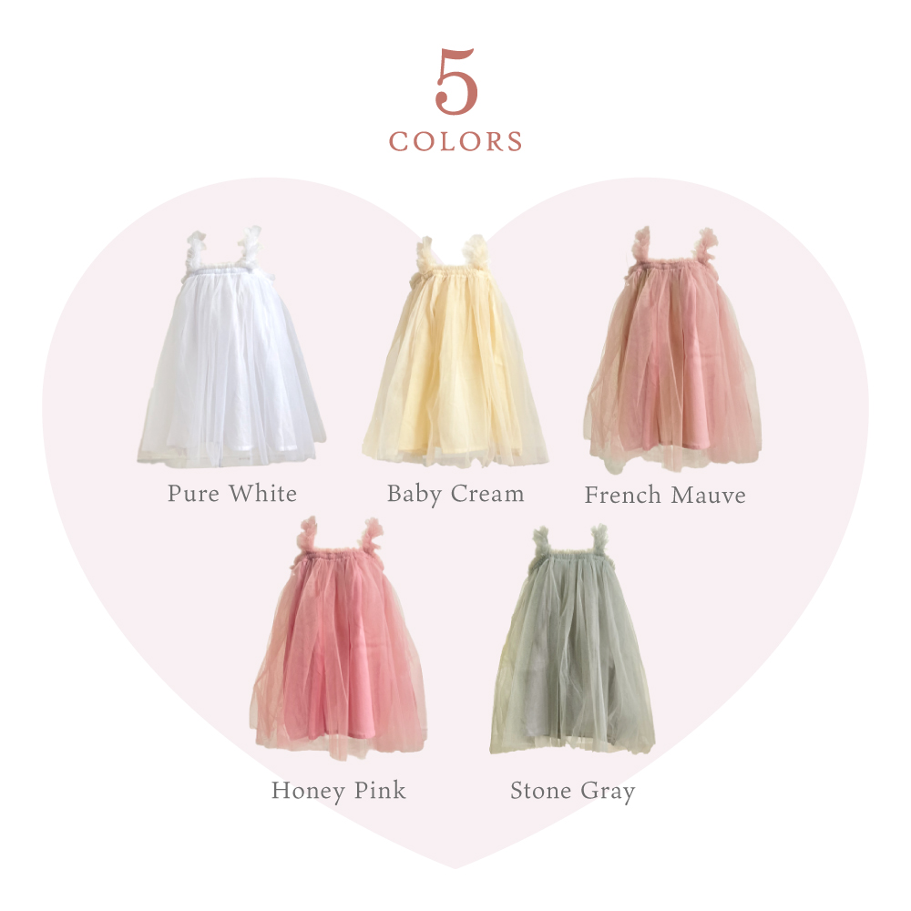 ふんわり軽やかに広がる柔らかなフォルムが、無垢さな可愛さを際立たせる、小さなプリンセスのためのシフォンドレスです。
