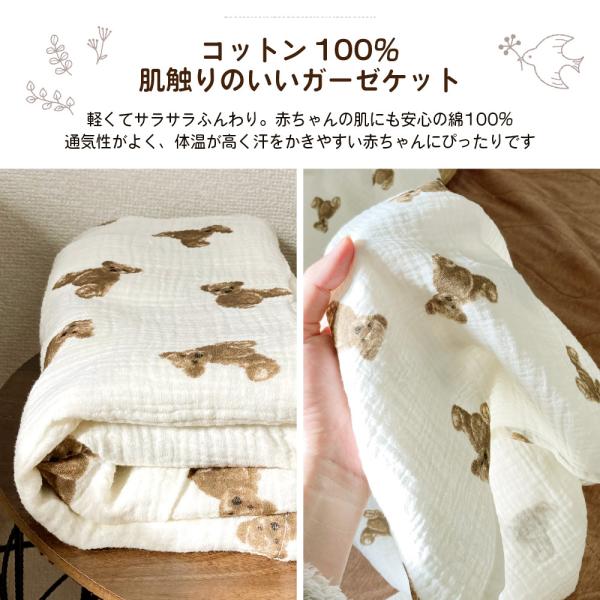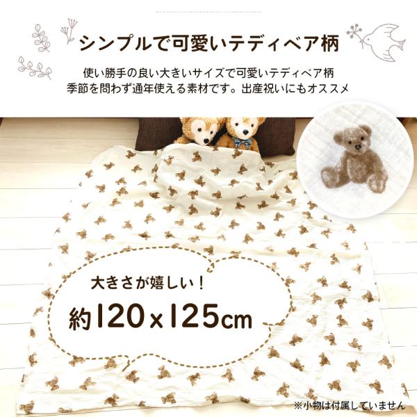 テディベア柄 ベビーガーゼケット くま柄 タオルケット おくるみ 綿 コットン 100% ブランケット 薄手 赤ちゃん ベビー キッズ 子供 お昼寝 regalo