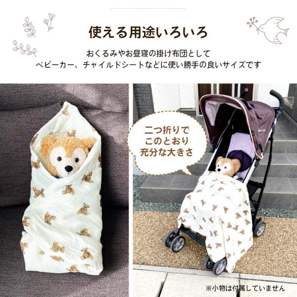 お子様をしっかり包む約120×125cmの大きなガーゼケットです。