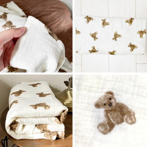ベビー ガーゼケット ダブルソフトガーゼ テディベア柄