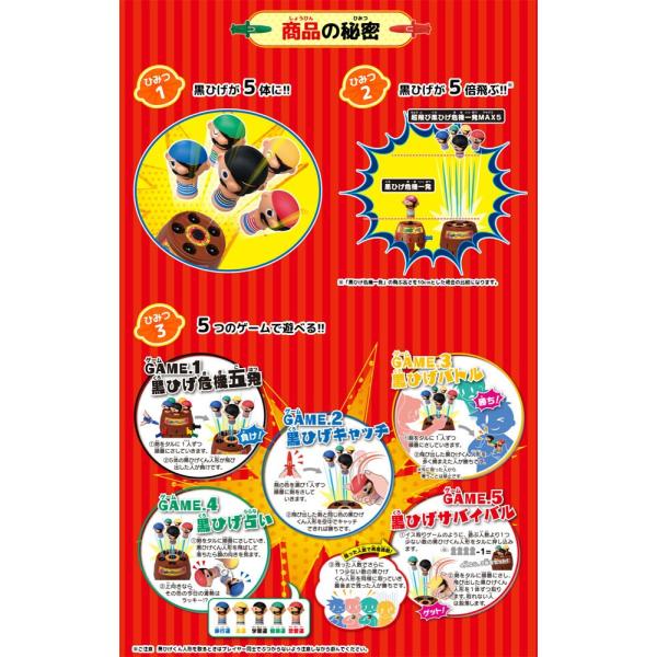 今度の黒ひげは5倍増し! 5人の黒ひげが5倍飛んで5つのゲームで楽しめる!