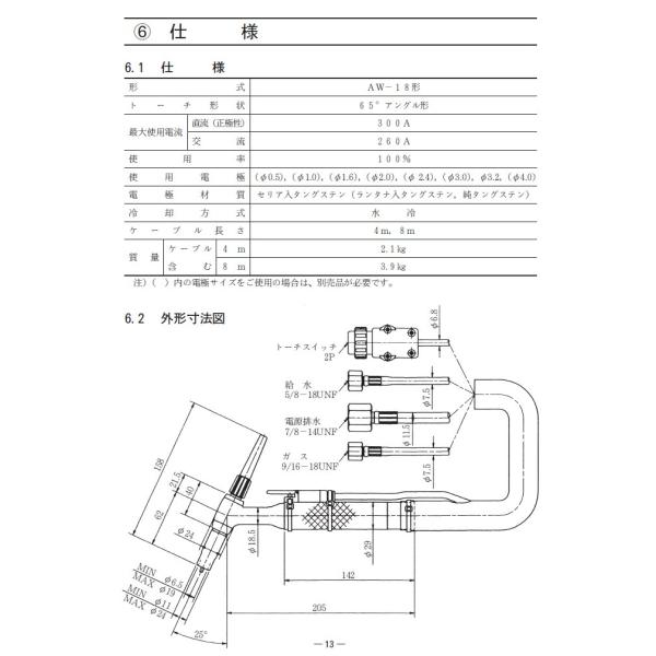 本商品は DAIHEN(ダイヘン)純正 TIG溶接用トーチ AW-18(型番 AW184) です。