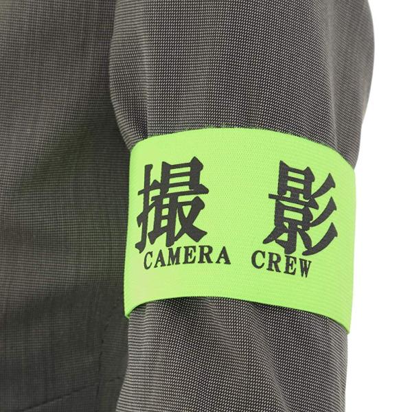 「商品情報」「主な仕様」【安全ピン不要】【クリップ不要】【マジックテープで簡単取り付け】面倒なクリップや安全ピンでの取り付け不要。伸縮性のあるバンドでずり落ちない。マジックテープでサイズ調整も可能です。伸び縮するバンドとサイズ調整可能なマジックテープによりずり落ちることなく腕に簡単に巻いて使用できます。「撮影(カメラクルー)」の文字が入った便利な腕章です。