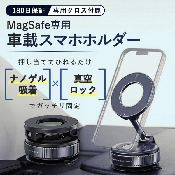 スマホホルダー 車載 MagSafe対応 真空ロック 吸着式 ナノゲル吸着 強力固定 片手操作 360度回転 iPhone 12 17