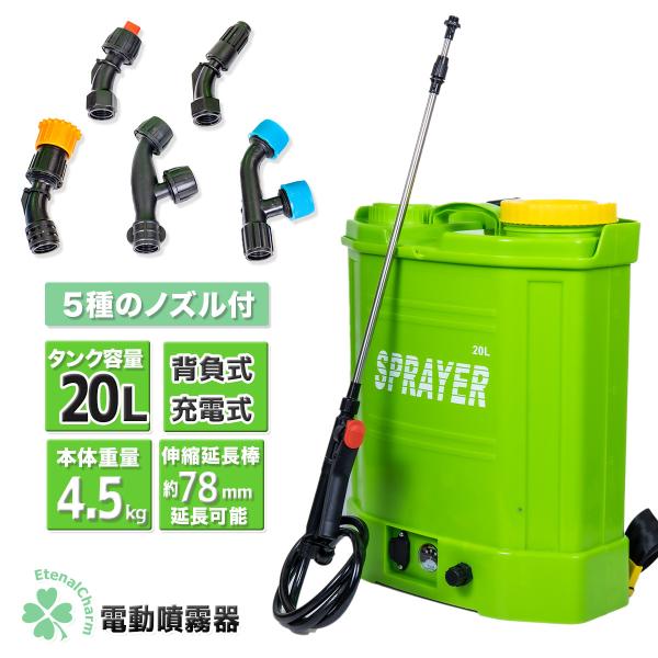 電動噴霧器 背負式 コードレス噴霧器 Bタイプ 20L 20リットルタンク 軽量 静音 バッテリー充電 農薬 除草剤 散布 液体肥料 水やり