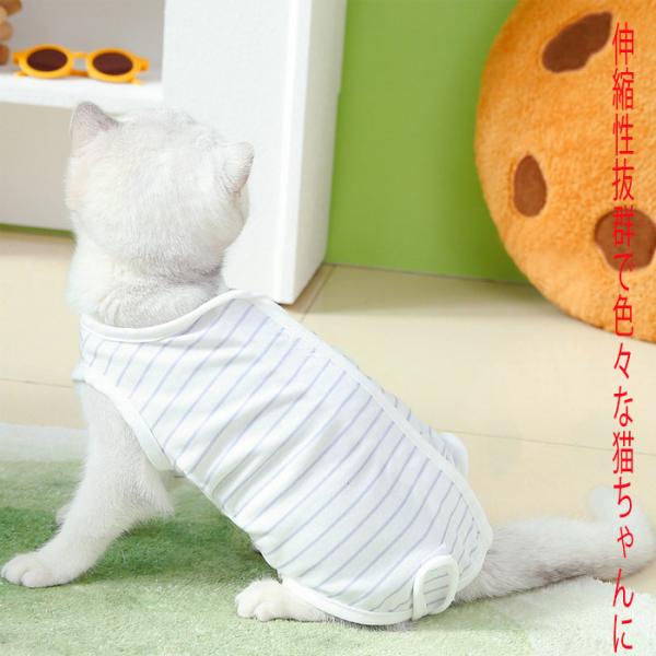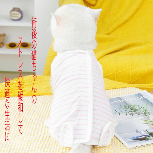 術後服 猫 ストライプ柄 ペット介護服 メス猫避妊服 脱げにくい 術後ウェア 不妊手術 傷口保護 皮膚保護 引っ掻き防止 舐め防止 避妊手術 離乳 傷舐め 安い