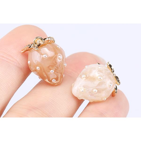 いちごチャーム 樹脂製イチゴチャーム かわいいフルーツチャーム 苺 パール付き 12×16mm(2ヶ)