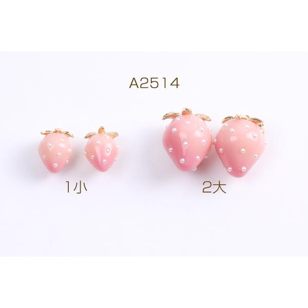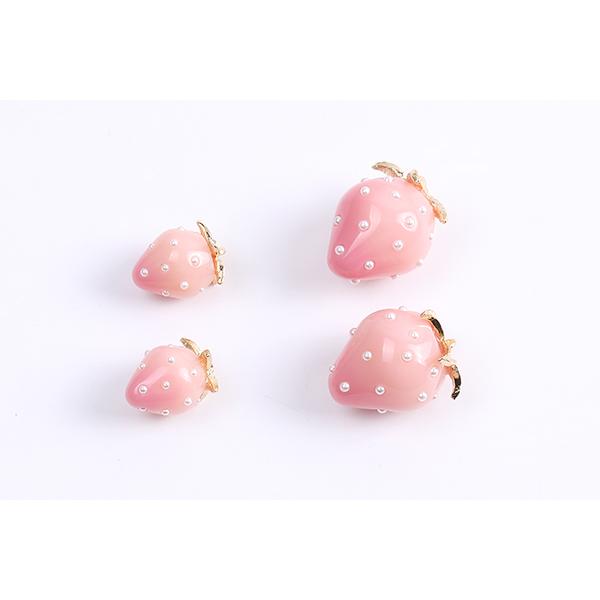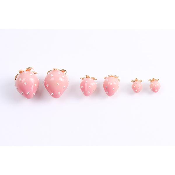 いちごチャーム 樹脂製イチゴチャーム かわいいフルーツチャーム 苺 パール付き グラデーションピンク(2ヶ)
