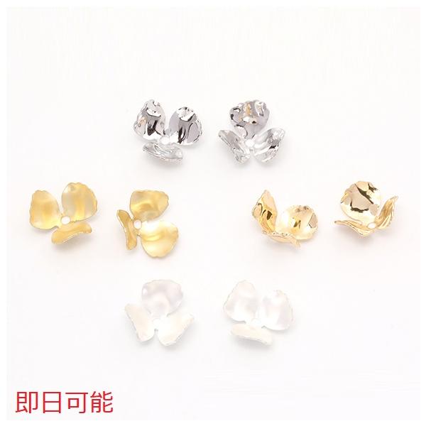 【即日可能】メタルフラワーパーツ ビーズキャップ 花座 座金 三弁花 中心通し穴あり 12mm(6ヶ)