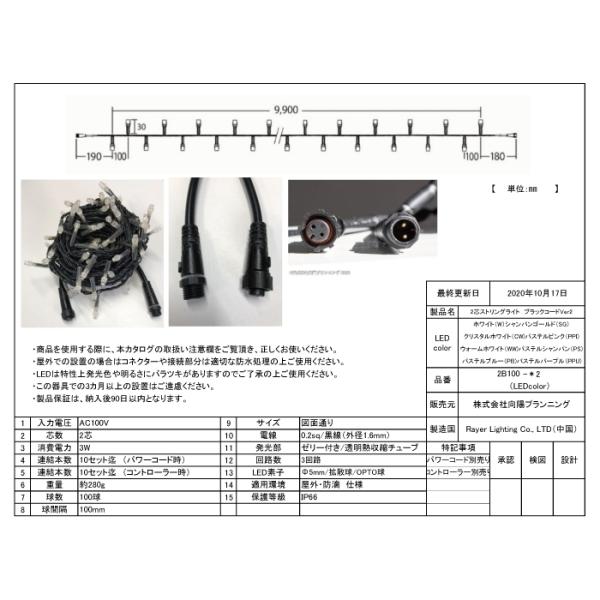 【在庫入れ替え値下げ】送料無料 イルミネーション LED 2芯黒コードストリングライトVer.2 100球 9.9m プロ 施工用 屋外 野外 壁 パワーコードセット価格