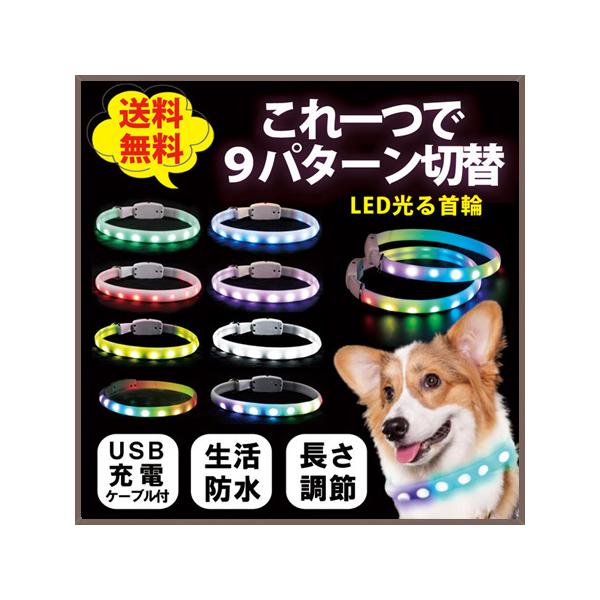 首輪 光る 犬 散歩用 夜 レインボー LED ライト USB 充電式 シリコン 防水 柔らかい ソフト 中型犬 大型犬 小型犬 ペット 夜間 迷子 ひかる クリスマス