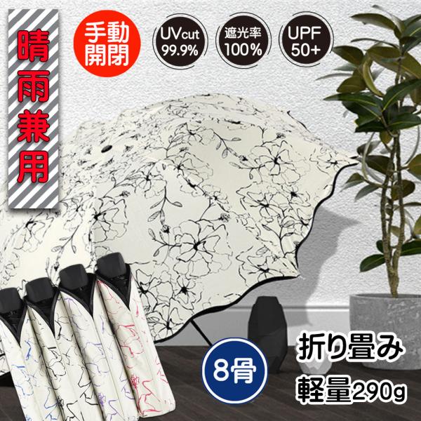 折りたたみ傘 晴雨兼用 完全遮光 花柄 8本骨 UVカット 軽量 雨傘 日傘 折り畳み 雨天兼用 強力撥水 遮熱 耐風 頑丈 丈夫 レディース