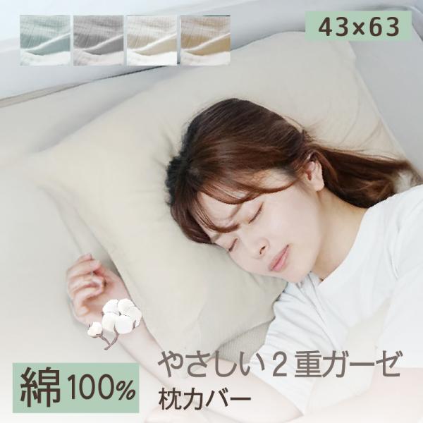 枕カバー 二重ガーゼ 綿100% 43×63 2重ガーゼ ふんわり ダブルガーゼ まくらカバー ピロケース綿 コットン 新生活 選べる4色 ネコポス配送
