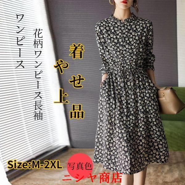 ワンピース きれいめ 花柄ワンピース50代 着やせ 上品 大きいサイズ トールサイズあり 膝丈 長袖 春夏秋冬