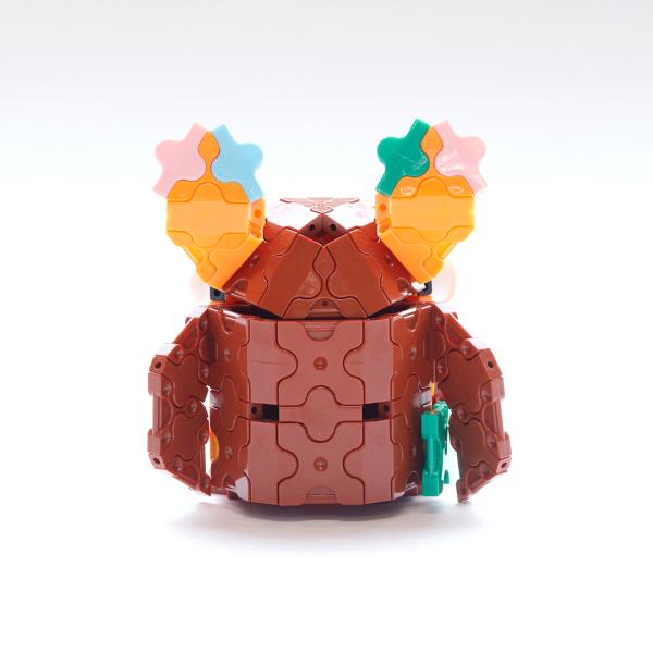 ぬいぐるみに負けじと左右の目の違いはハマクロンパーツの裏表で再現。