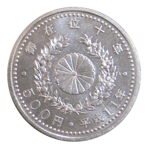 ◆天皇陛下御在位10年記念 500円白銅貨 平成11年(1999年)