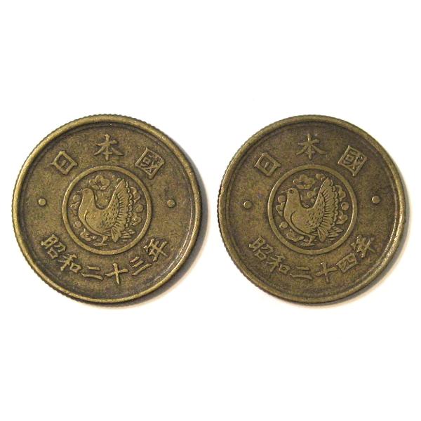 穴ナシ5円黄銅貨 昭和23・24年(1948・1949年) 2枚セット