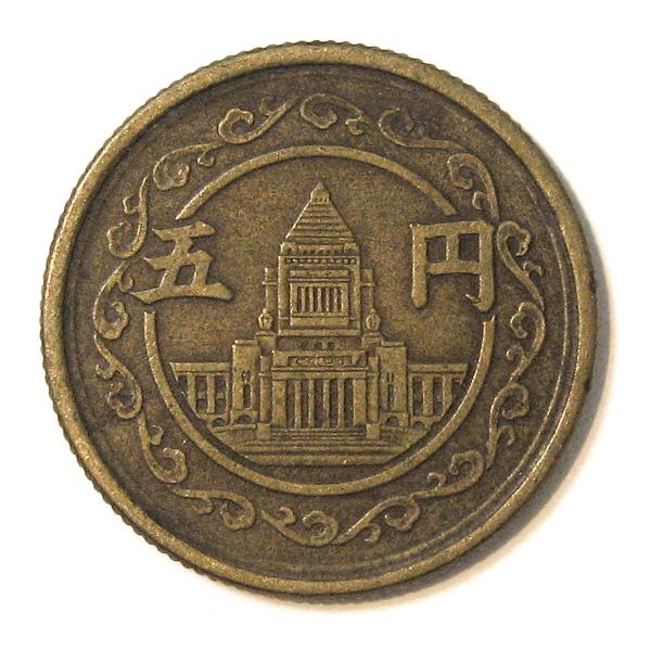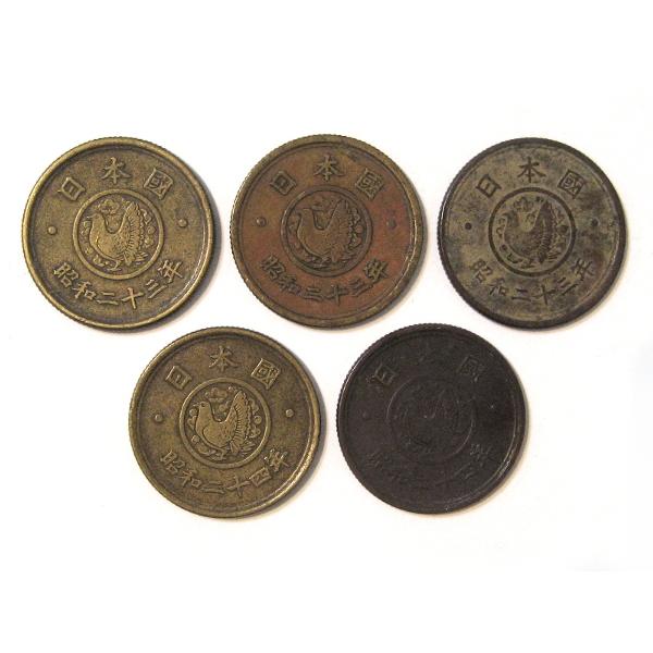 お買い得!!昭和23年・24年の2年間だけの発行 穴ナシ5円黄銅貨 5枚セット(最初の5円玉)