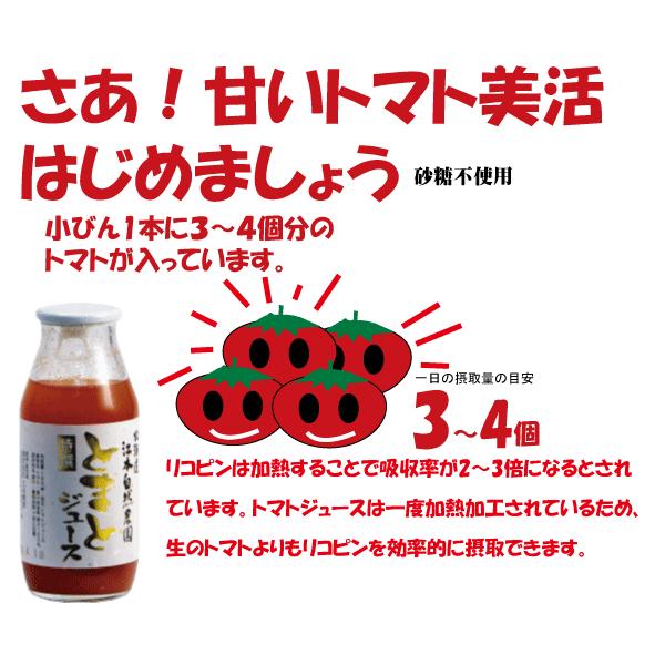 北海道江本自然農園で無農薬、無添加、有機栽培で育てたトマトを100%使用のトマトジュース。ダイエット・美容に良いリコピンたっぷり。無塩、砂糖一切不使用です。