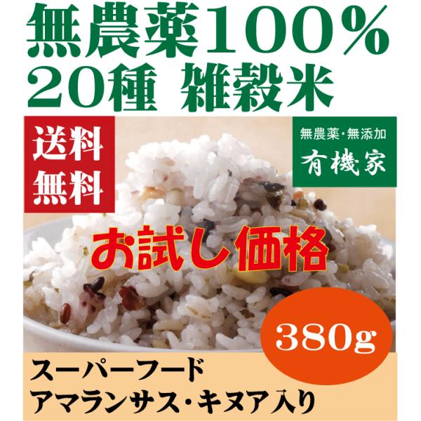 無農薬雑穀米・二十雑穀米「お試し・20雑穀米」 380g 無化学肥料・遺伝子組み換えなし 無漂白 無着色 保存料使用なし「ネコポス便」