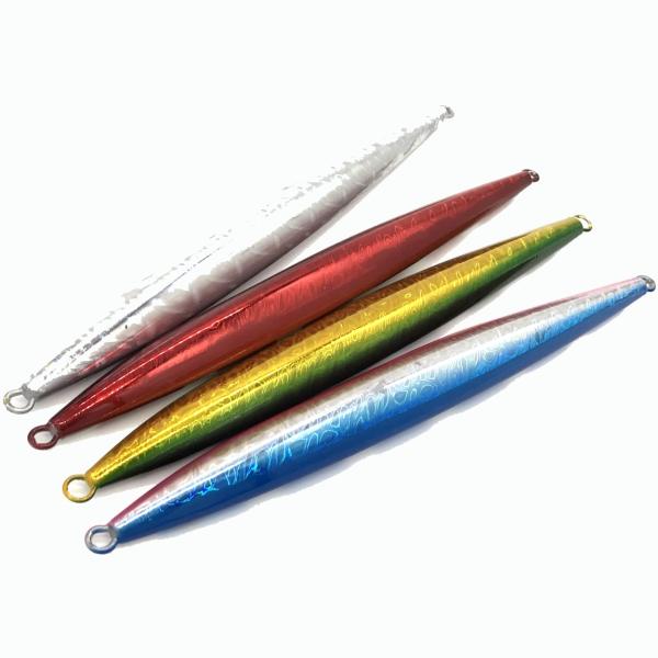ロングジグによるスムーズなフォールスピードとシャクリやすさに拘ったスリムボディーで中深海ジギングから太刀魚ジギングまで対応。