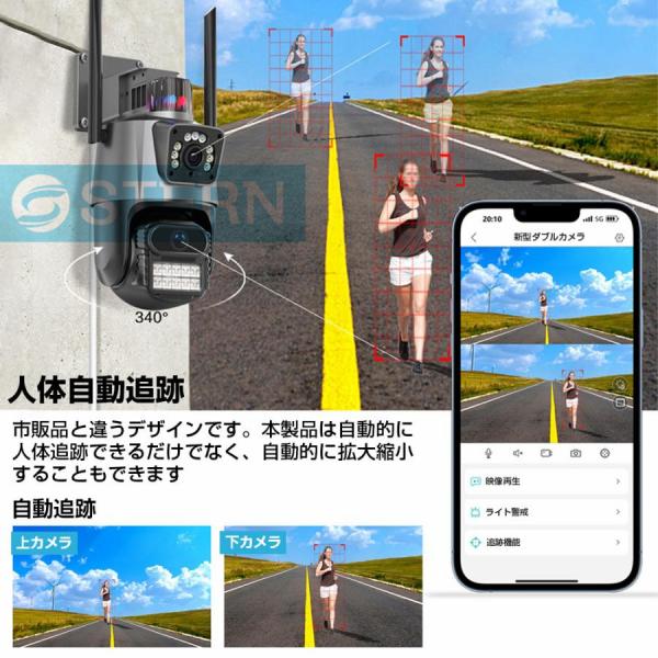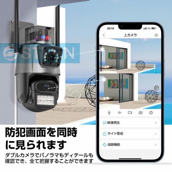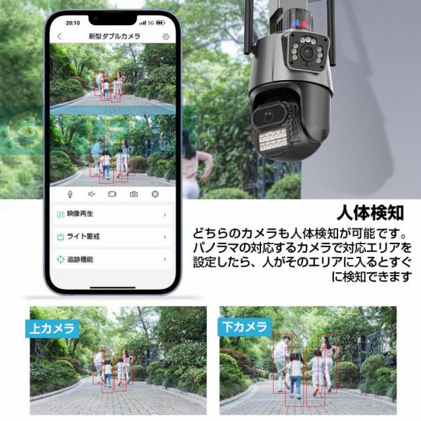 【最新型1200万画素】防犯カメラ 屋外 家庭用 wifi 屋外カメラ 人体検知 自動追跡 パンチルト デュアル 遠隔監視 防水防塵 監視 夜間撮影 スマホ対応工事不要