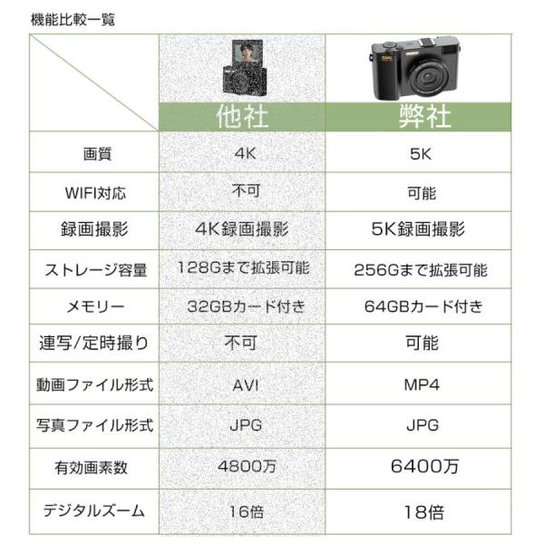 デジカメ デジタルカメラ 5K WiFi機能 18倍ズーム 6400万画素