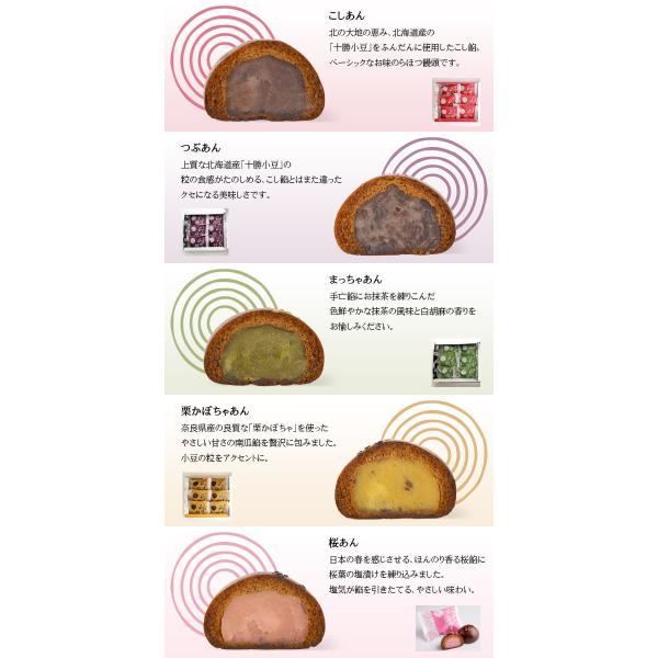 「大和抹茶あん」:奈良銘茶である大和抹茶をふんだんに使用した風味豊かな抹茶あんです。