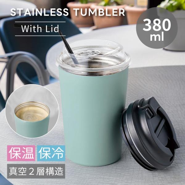ステンレスタンブラー 380ml | 蓋付き フタ付き リッド テイクアウト コーヒー コンビニ サーモステンレス ステンレス タンブラー 保温 保冷 水筒 蓋付